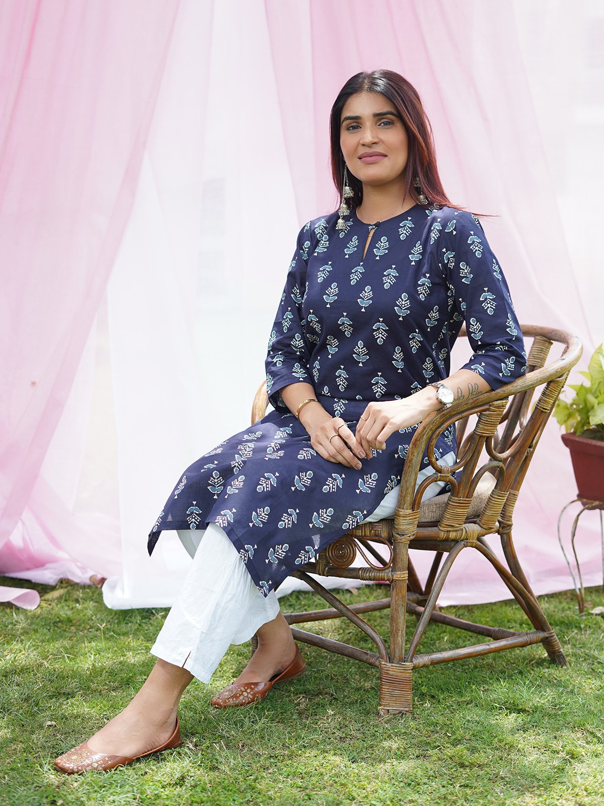 Add to WishlistAdd to WishlistIshya: Serene Indigo Floral Kurti Set
