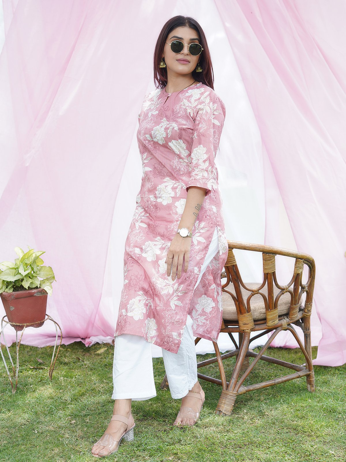 Add to WishlistAdd to WishlistSaanvi: Bright Blossom Cotton Kurti Set
