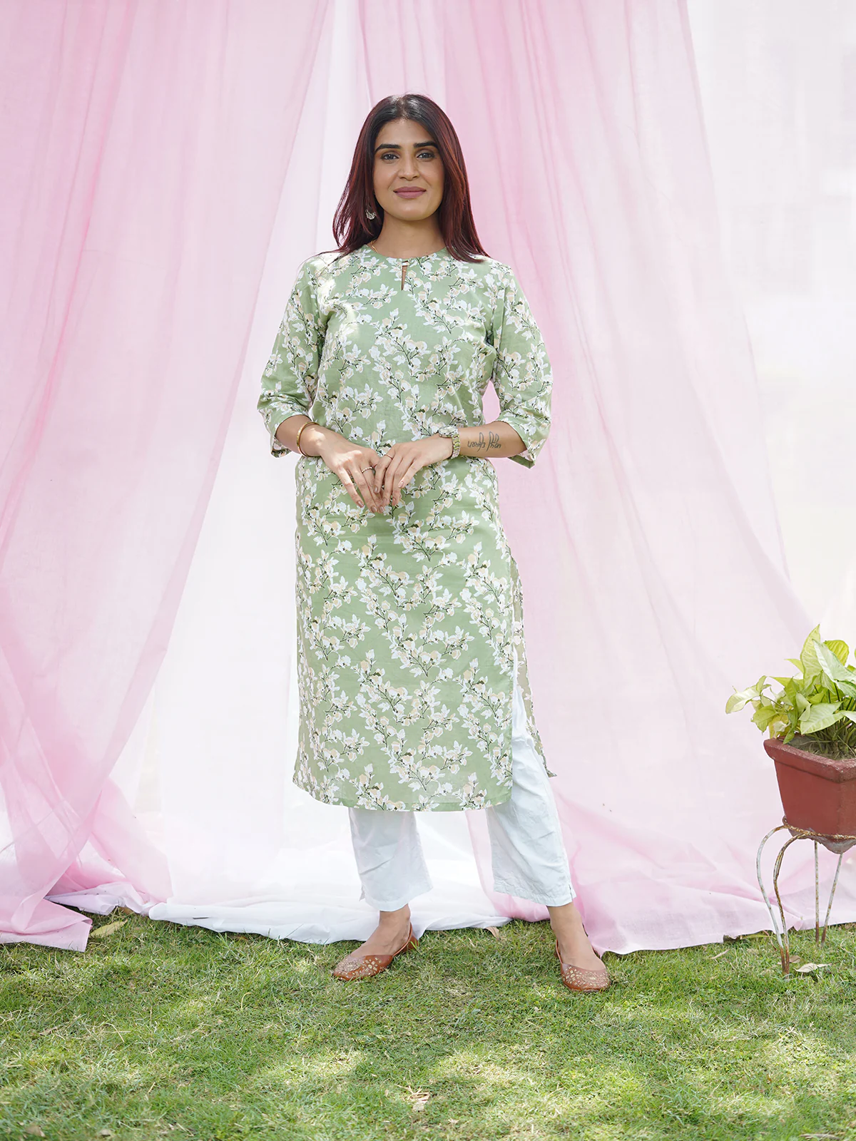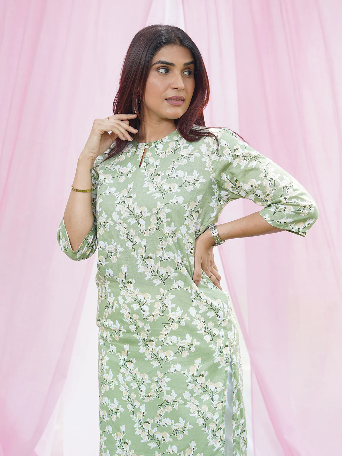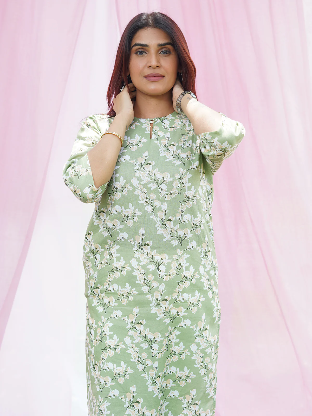 Step into effortless elegance with this beautifully crafted green floral printed kurti by Aimonly. Made from 100% pure cotton, this kurti offers unbeatable comfort while keeping your style game strong. The soft pastel green base with delicate white floral patterns brings a fresh, summery charm that’s perfect for everyday wear or casual gatherings.